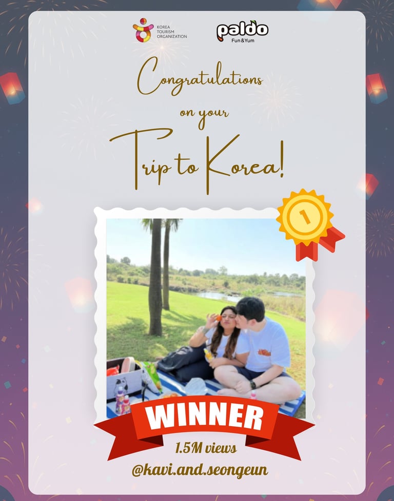 The top 2 winners will travel to Korea in the 4th week of December 2025 for an amazing Christmas experience and content shoot with KTO & Paldo Ramyun. If a winner is unable to participate, the opportunity will be offered to the next eligible participant.